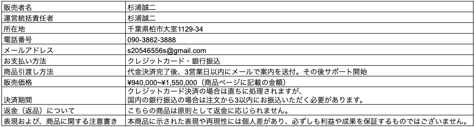 特定商取引法に基づく表記